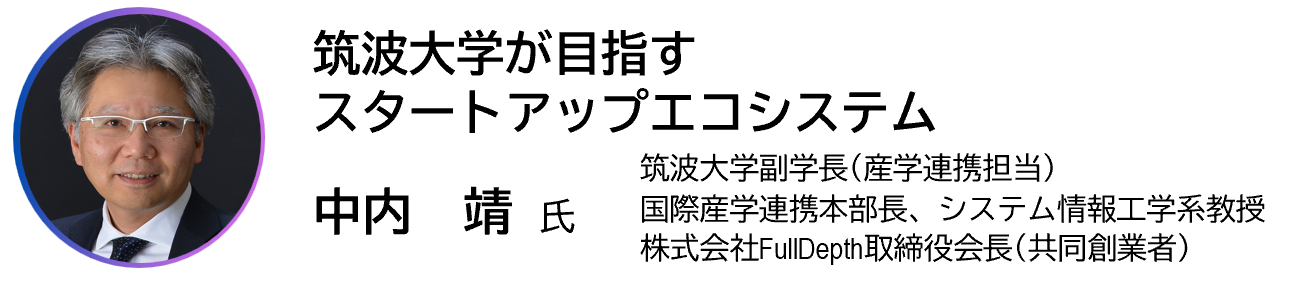 | 午前 | ・開会あいさつ ・来賓あいさつ ■講 演■ 「筑波大学が目指すスタートアップエコシステム」 中内 靖 氏 (筑波大学 副学長(産学連携担当)、国際産学連携本部長、システム情報工学系教授) (株式会社FullDepth取締役会長(共同創業者)) 「日本発創薬スタートアップのつくり方:エコシステム、政策支援、R-Edgeの実践」 志鷹 義嗣 氏 (株式会社RealizeEdge Partners 代表取締役社長) 「大学発スタートアップの楽しさと難しさ」 池野 文昭 氏 オンライン登壇 (STANFORD UNIVERSITY) |