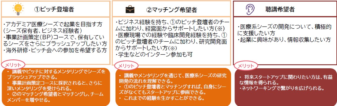 ※ ①ピッチ登壇者が多数の場合は、書類選考により登壇の可否を検討させて頂く場合があります
