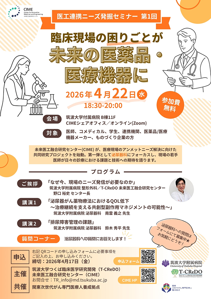 第1回 CIME医工連携ニーズ発掘セミナー開催(2026/4/22)