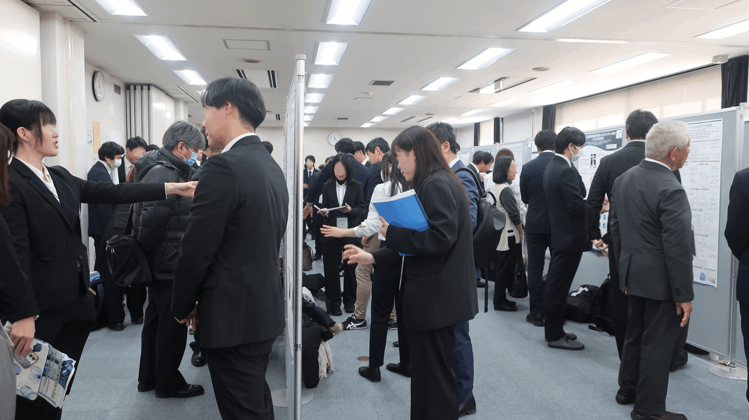 また、つくば医工連携フォーラム会場では70件超のポスター発表が行われ、会場中で参加者の熱意溢れる議論が聞かれました。今回、「つくば異分野融合医学セミナー」のカテゴリーを設けることで、本大会のメインテーマである「未来へつなぐ、つくばの医工連携」に沿った取り組みとして、基礎研究者と医療者との交流促進に寄与する場を創出することができました。また、「『つくば異分野融合医学セミナー』による異分野融合型研究の推進」と題し、これまでの本セミナーの活動実績についてポスター発表を行いました。